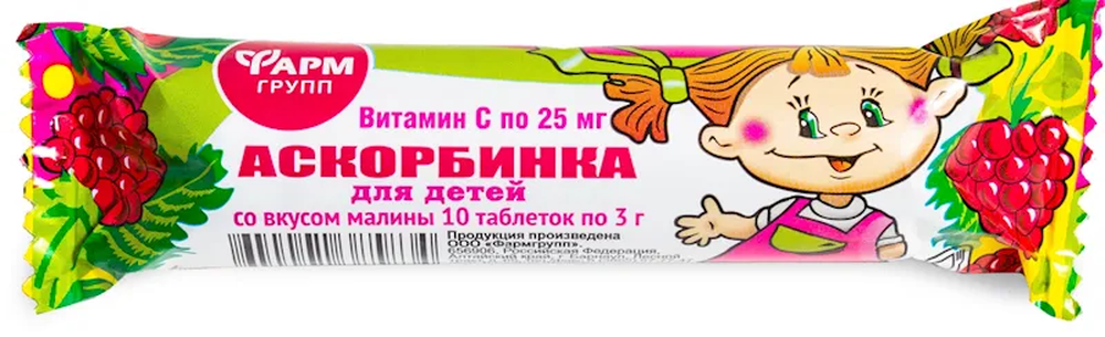 "ASKORBINKA" RASPBERRY TASTE 25GR $0.89/30PC