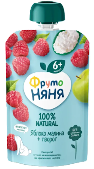 43000249 "FRUTO-NYANYA" PUREE APPLE - RASPBERRY - COTTAGE CHEESE 90GR $1.35/12PC