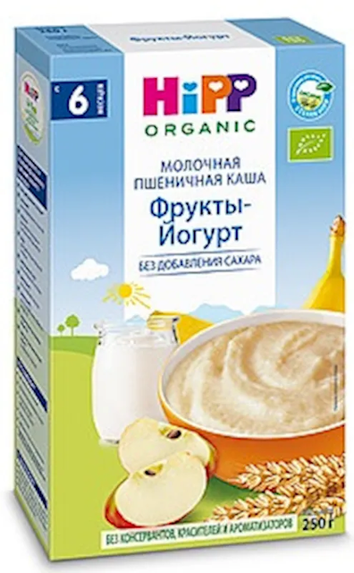 "HIPP" MILK WHEAT KASHA W/FRUITS & YOGURT 8 MONTH 250GR $9.95/8PC