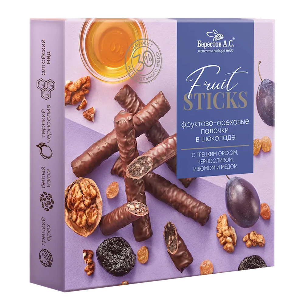 "BERESTOV" CHOCO-STICKS W/PLUM,WALNUT 175GR $5.95/12PC