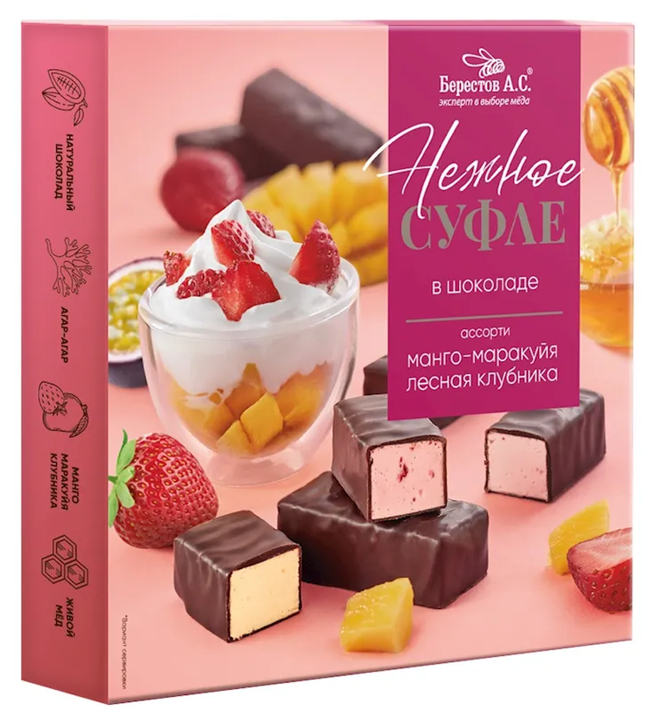 "BERESTOV" ASSORTED SOUFLE MANGO/PASSION FRUIT/STRAWBERRY 155GR $4.35/6PC