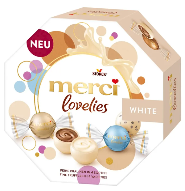 "MERCI" LOVELIES WHITE PRALINE 185GR $4.45/7PC