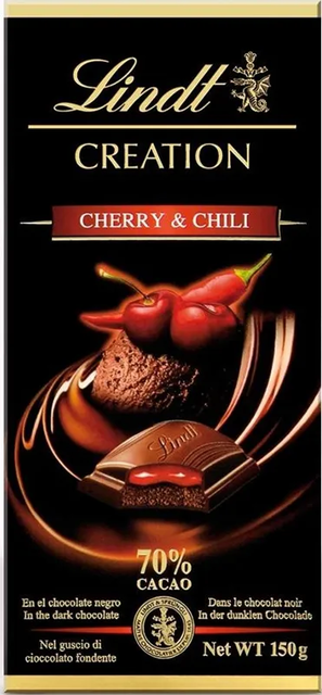 Lindt CREATION 70% DARK CHOCOLATE MOUSEE W/CHERRY & CHILI 150GR $5.95/13PC N/D