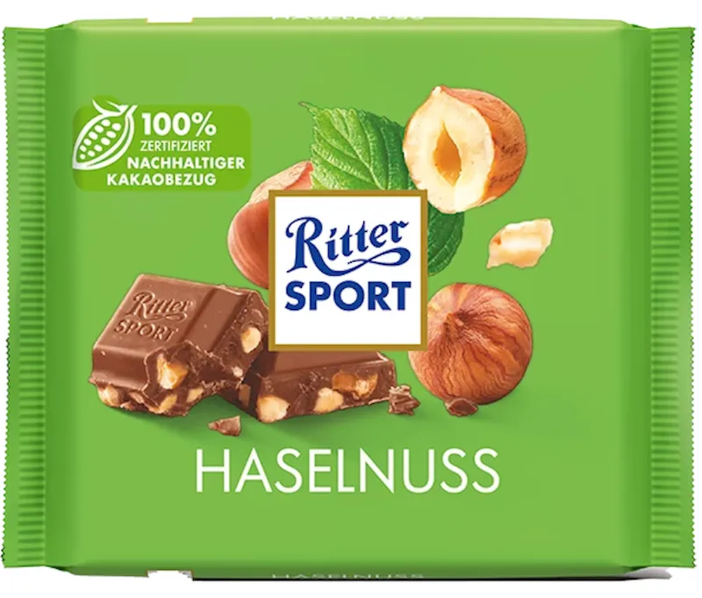 "RITTER SPORT" MILK CHOC. W/CRUSHED HAZELNUT 100GR $2.85/12PC