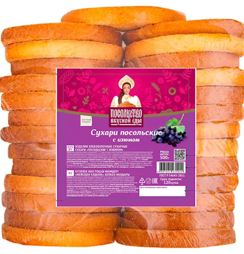 "POSOLSTVO VKUSNOY EDY" SUHARY W/RAISIN 500GR $2.95/10PC