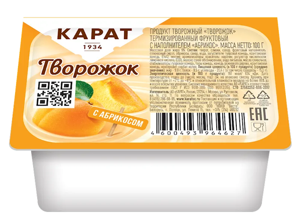 "KARAT" FARMER CHEESE W/APRICOT 230GR $2.95/8PC