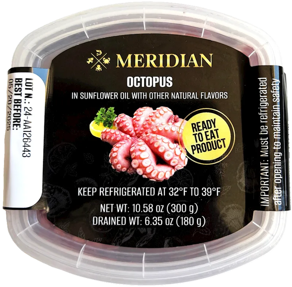 "MERIDIAN" OCTOPUS IN OIL 300GR $14.45/12PC N/D