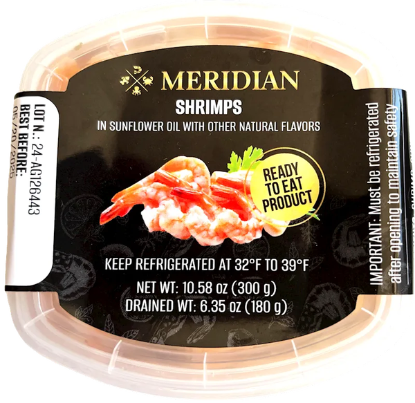 "MERIDIAN" SHRIMP IN OIL 300GR $13.65/12PC N/D