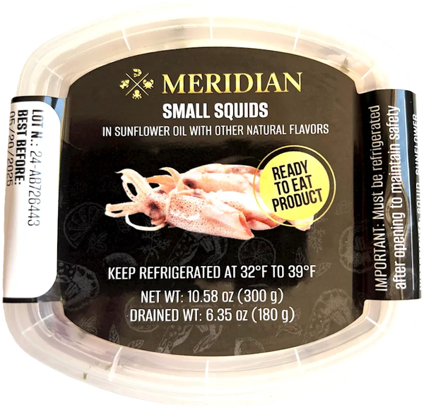"MERIDIAN" SMALL SQUIDS IN OIL 300GR $9.75/12PC N/D
