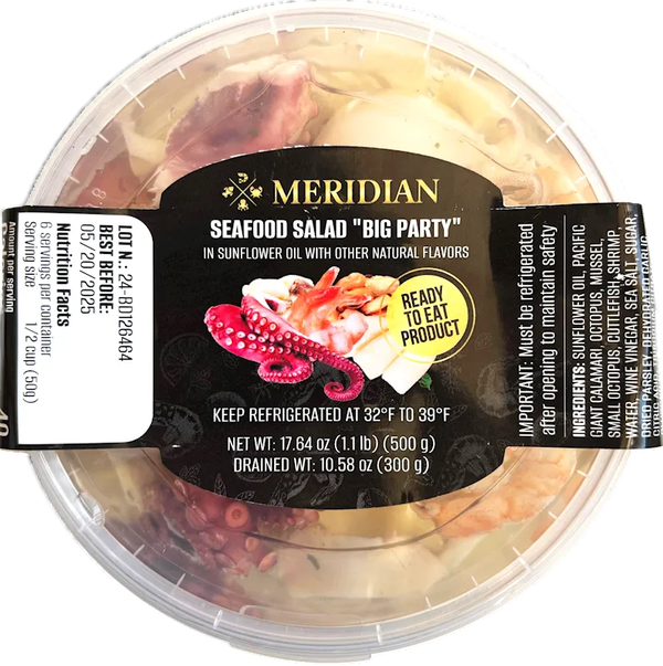 "MERIDIAN" SEAFOOD MIX GRAN FIESTA IN OIL 500GR $12.55/8PC N/D