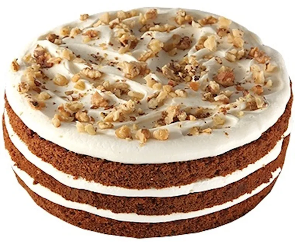 Воздушный бисквит с добавлением грецкого ореха и изюма, пропитанный нежным кремом из сметаны, сливочного сыра и ванили.