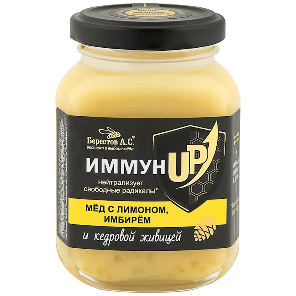 "BERESTOV" HONEY IMUN UP W/LEMON, GINGER, CEDAR RESIN 500GR $12.75/6PC