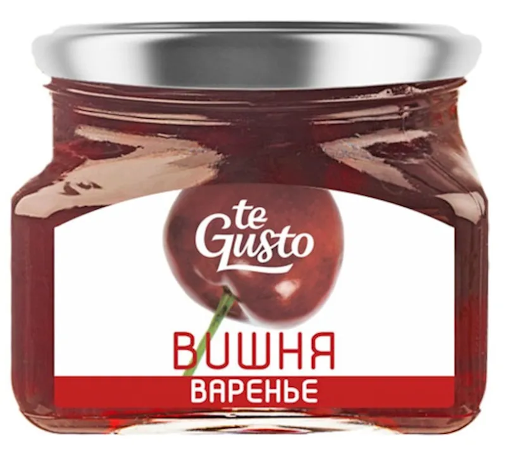 "TE GUSTO" CHERRY PRESERVE (VISHNYA) 430GR $2.95/12PC