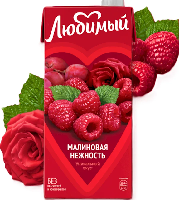"LUBIMIY" "MALINOVAYA NEZHNOST'" JUICE 950ML $1.85/12PC