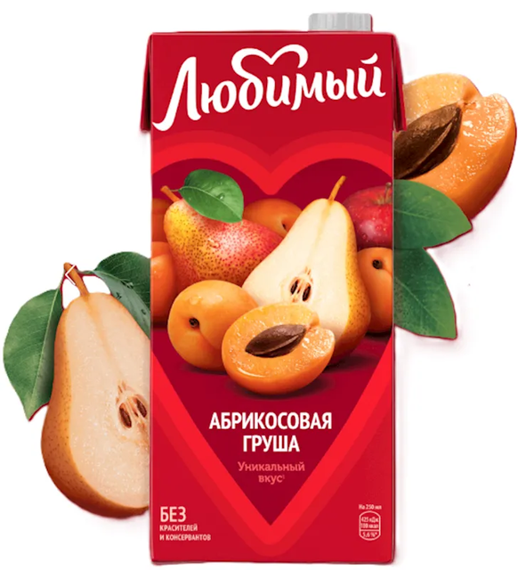 "LUBIMIY" "ABRICOSOVAYA GRUSHA" JUICE 950ML $1.85/12PC