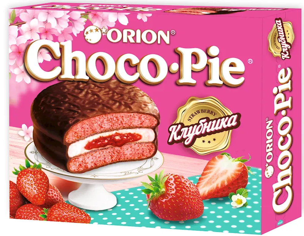 ORION "CHOCO-PIE" STRAWBERRY 360GR $3.95/8PC N/D