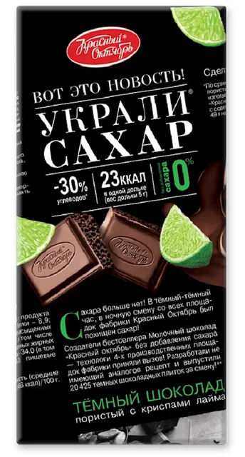 "KRASNIY OKTYABR" SUGAR FREE DARK CHOCOLATE W/LIME 75GR $2.35/20PC