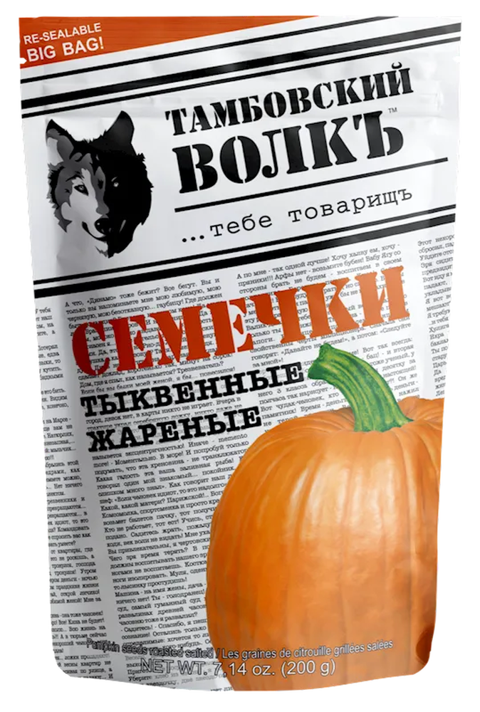 "TAMBOVSKIY WOLK " PUMPKIN SEEDS ZIP 200GR $4.45/15PC