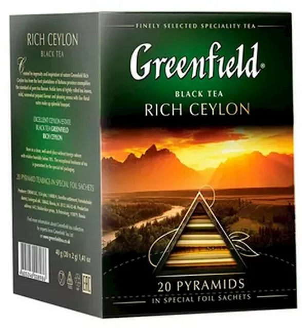 "GREENFIELD" BL.TEA "RICH CEYLON" 20 PYRAMID TB.$2.45/8PC