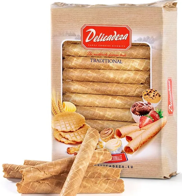 "DELICADEZA" WAFERS TUBULE 450GR $5.75/4PC