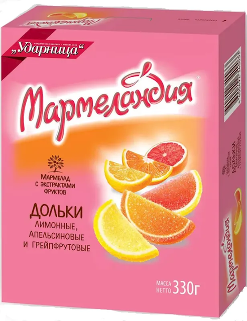 "UDARNITSA" MARMALADE ORANGE - GRAPE - LEMON 330GR $3.95/12PC