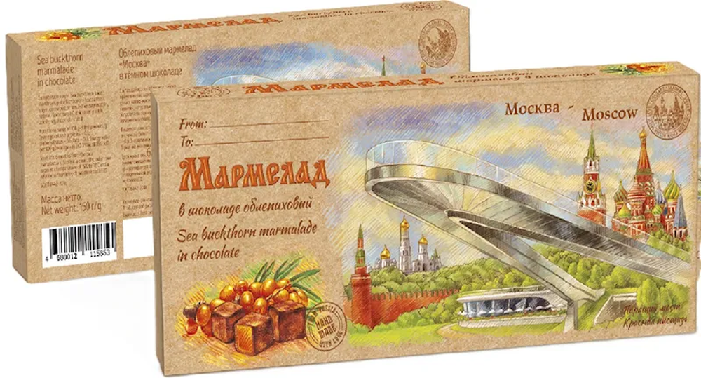 "SLADART MOSCOW" SEA BUCKHORN MARMALADE IN DARK CHOCOLATE 150GR $2.99/18PC