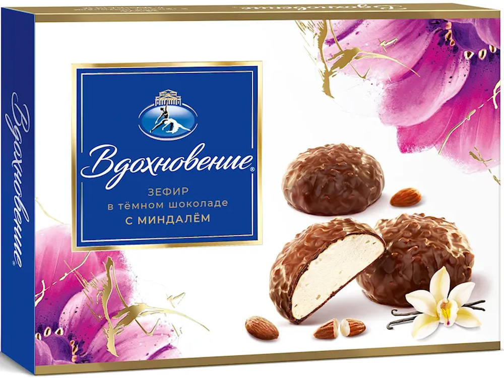 "VDOHNOVENIE" ZEPHIR W/ALMOND IN DARK CHOC. 230GR $4.55/6PC